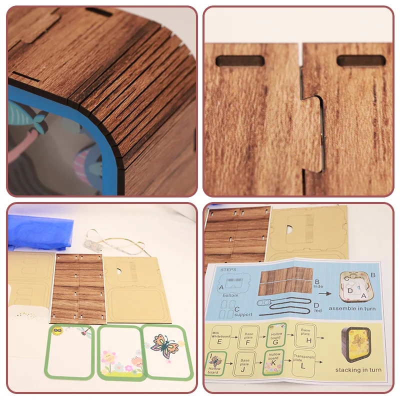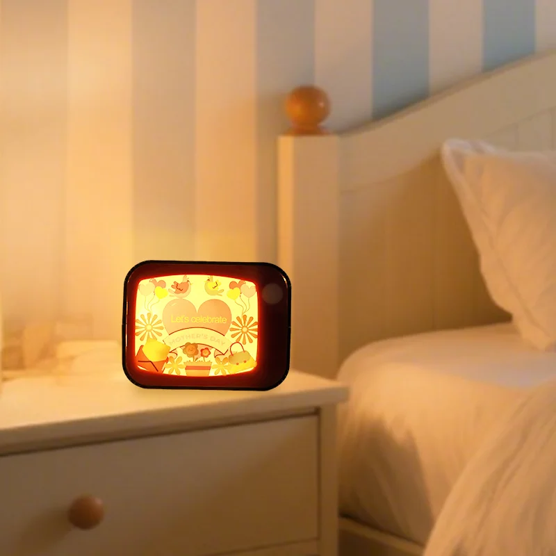 Geschnitzte Holz-Schreibtischlampe, 3D-Nachtlicht, individuelle Holzrahmen, luxuriöse Wohnraumbeleuchtung, Geschenkartikel für Schlafzimmer und Büro