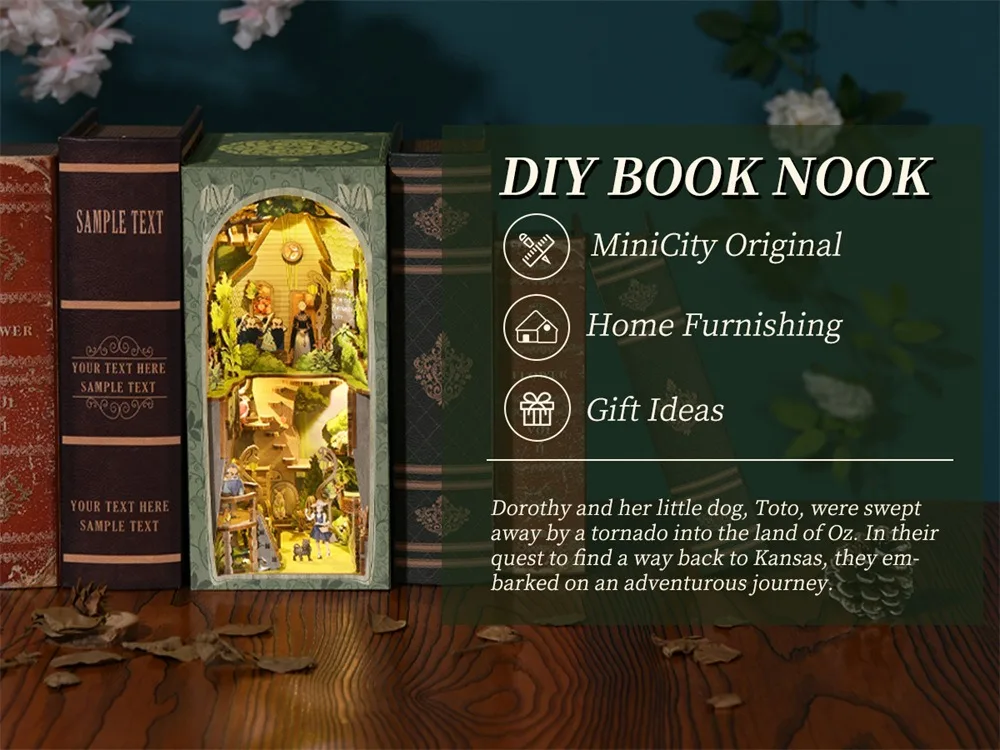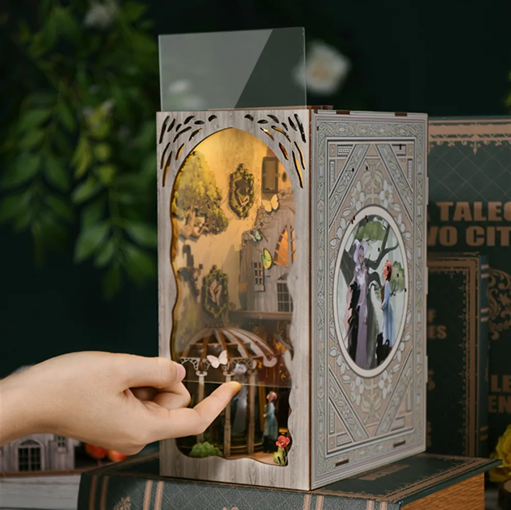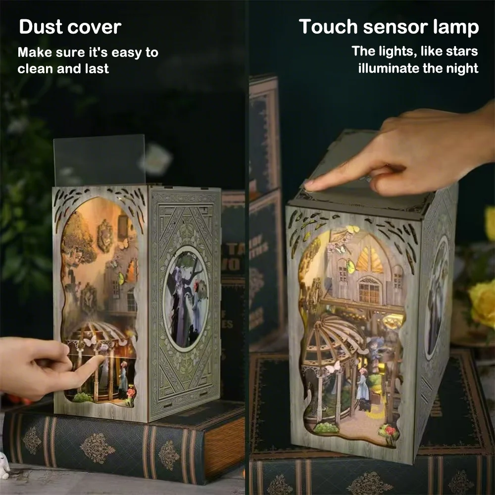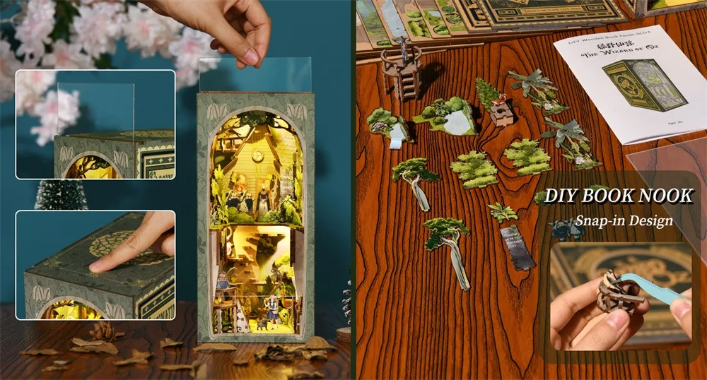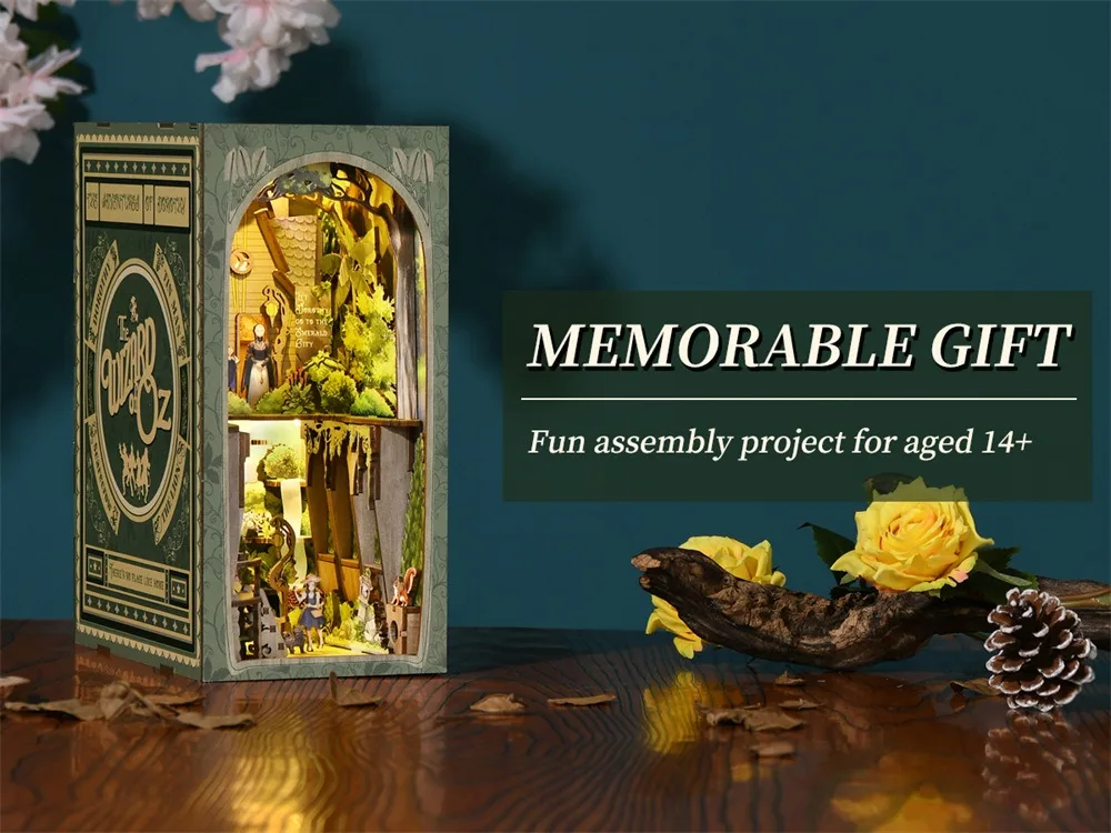 Zestaw Book Nook – puzzel 3D drewniany dla dorosłych, ręcznie robiona dekoracja w postaci mini biblioteczki, idealne uzupełnienie kącika do czytania