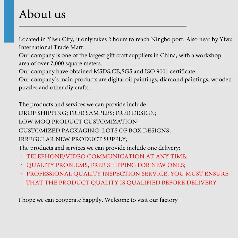 1. Dysponujemy bezpośrednim zakładem produkcyjnym z wieloletnim doświadczeniem w produkcji i eksportowaniu produktów DIY, dlatego nasz profesjonalny zespół może