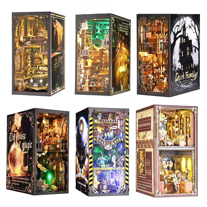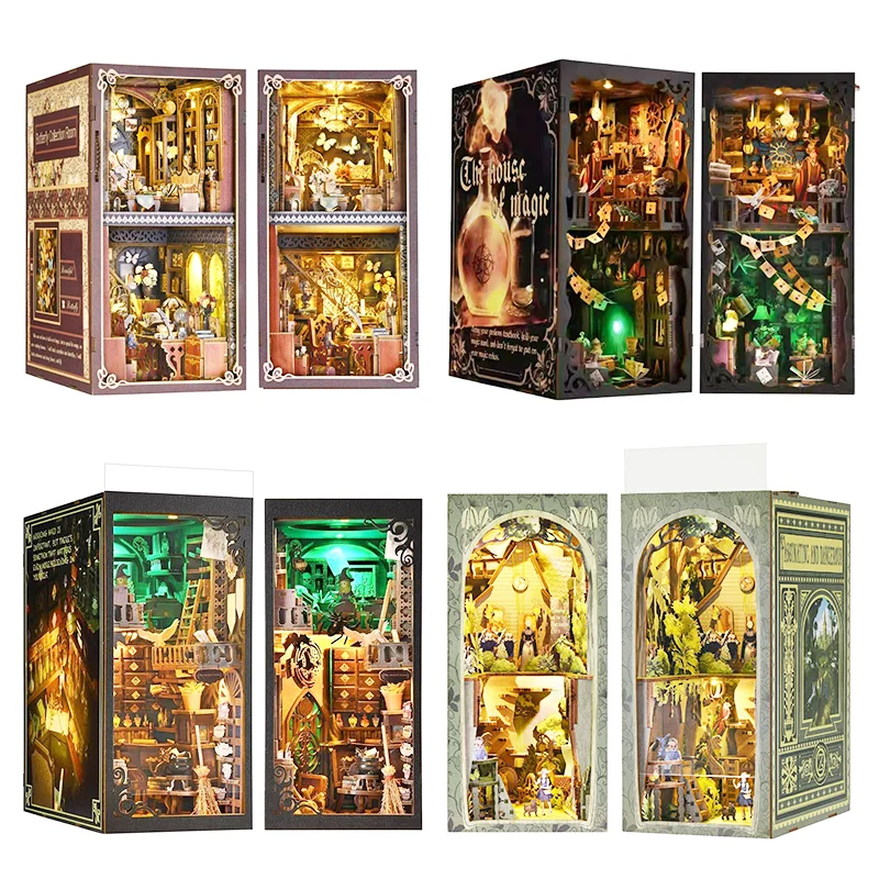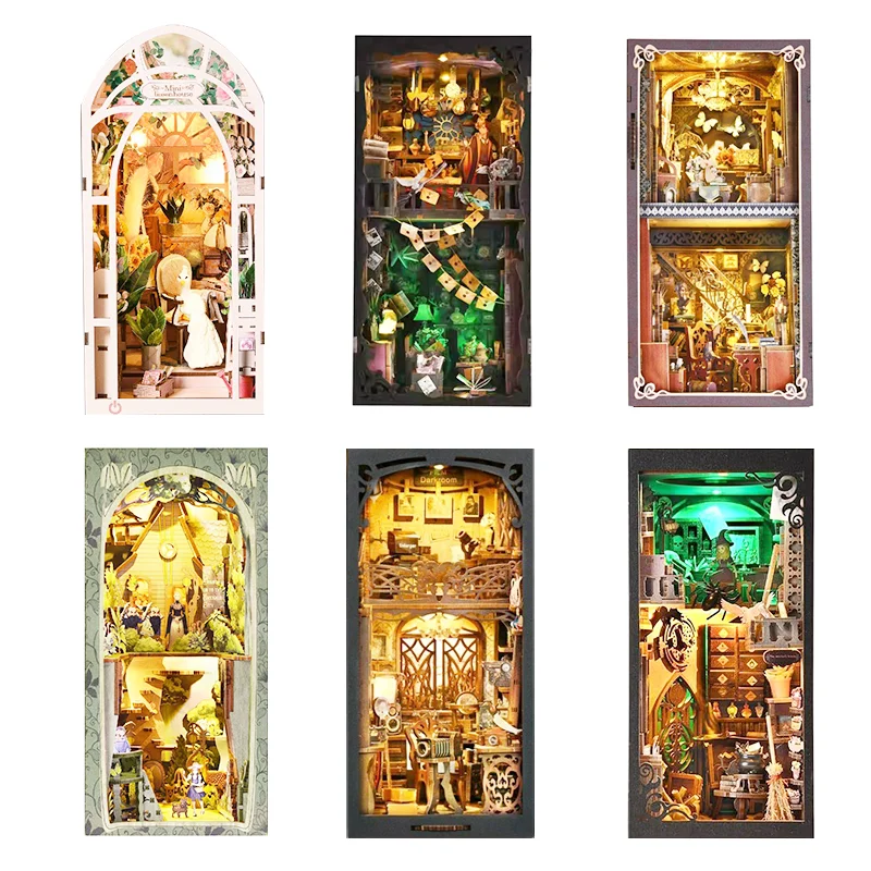 Zestaw DIY Book Nook w wielu stylach na półkę – kreatywna miniaturowa sceneria w formie domku lalki, MOQ=1, pomysł na prezent i dekorację wnętrz