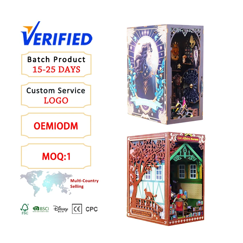 Hity sprzedaży MOQ=1 DIY Zestaw Book Nook - Miniaturowa dekoracja półki z domkiem lalek z certyfikatem CE, unikalny pomysł na prezent