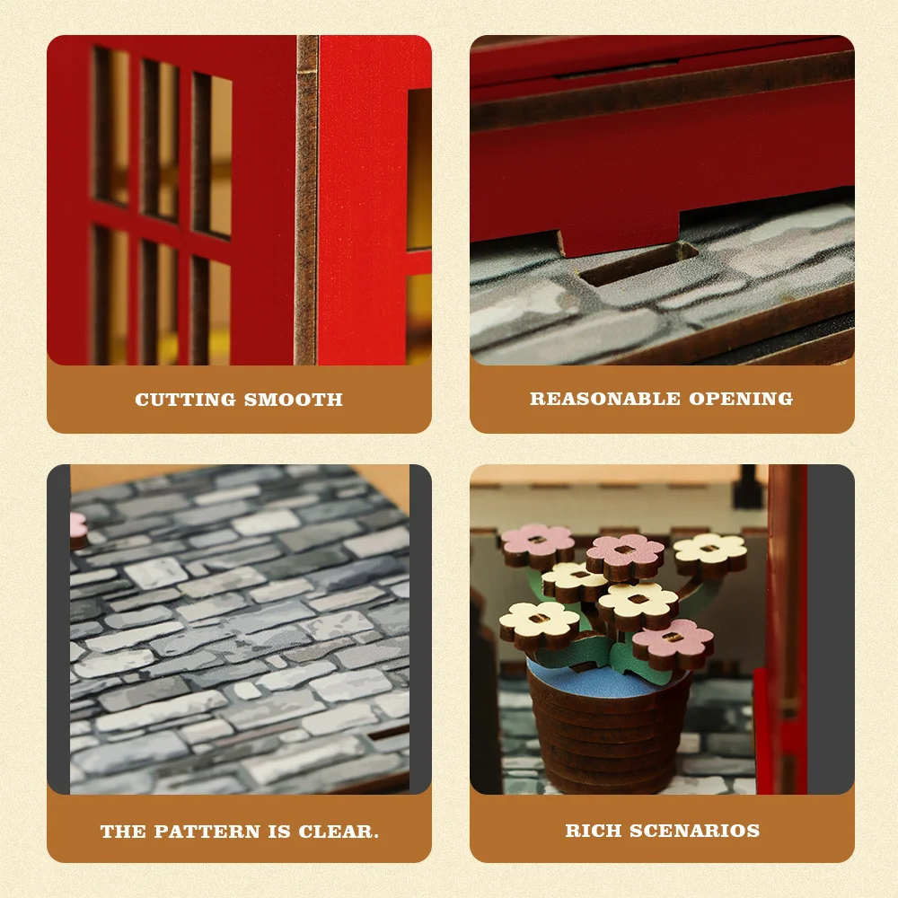 product london street telephone booth 3d wooden puzzle realistic british landmark wood puzzle 3d model kit-6