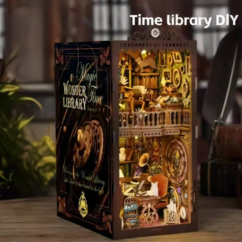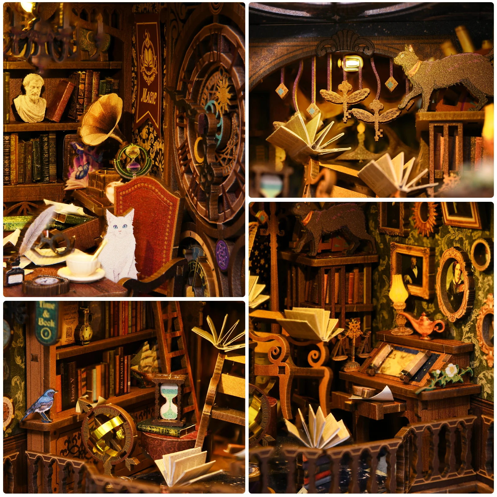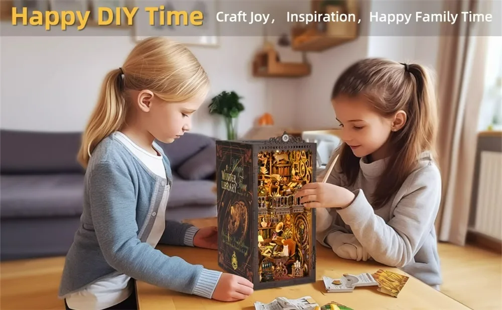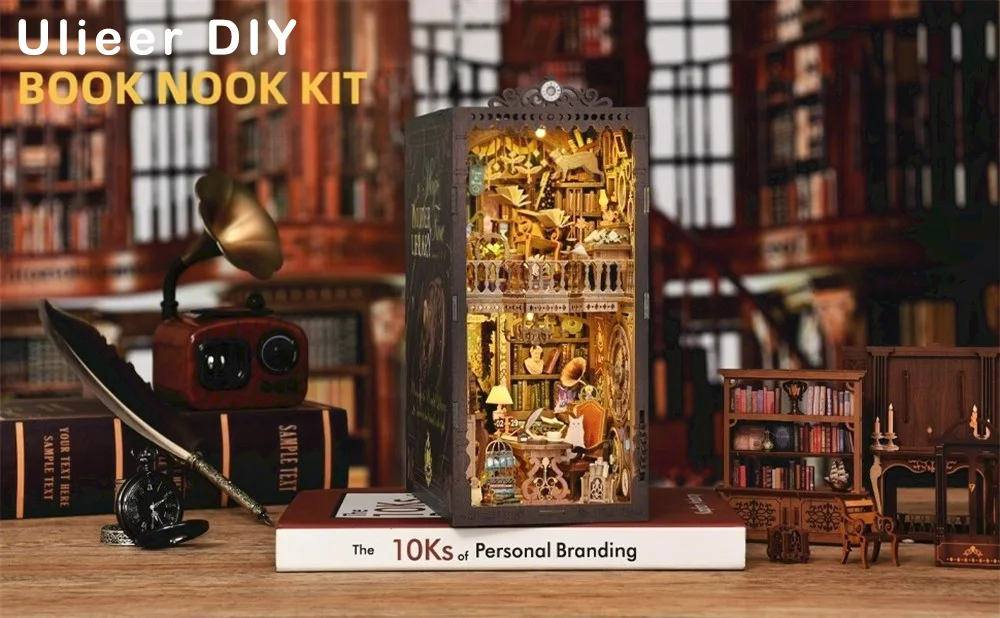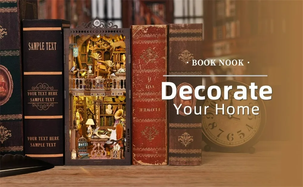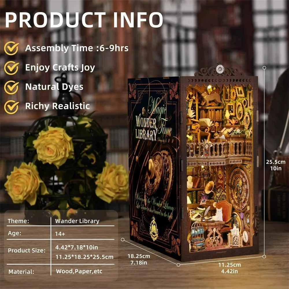 Kit DIY Book Nook da CuteBee - Inserção de Estante em Miniatura 3D, Quebra-cabeça Criativo em Madeira para Decoração de Ambiente e Presente para Amantes de Livros
